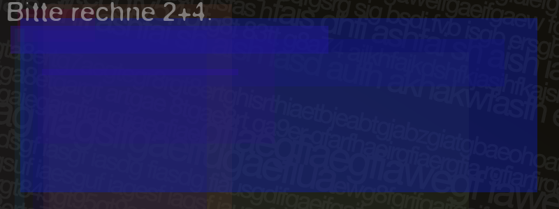 Die Visuelle Bestätigung hilft dabei automatische Spambots und Scripte von den Diensten dieses Forums abzuhalten. Derartige Scripte sind normalerweise nicht in der Lage den untenstehenden Code zu erkennen. Bitte geben Sie also in das untenstehende Feld die Buchstaben und Zahlen ein, die Sie in dem Bild erkennen können oder beantworten Sie die angezeigte Frage.