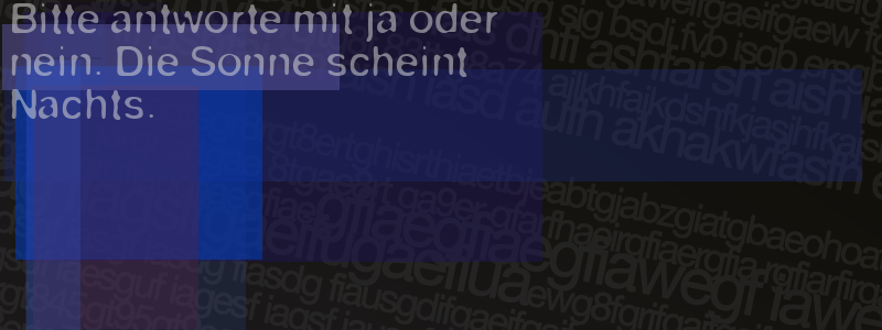 Die Visuelle Bestätigung hilft dabei automatische Spambots und Scripte von den Diensten dieses Forums abzuhalten. Derartige Scripte sind normalerweise nicht in der Lage den untenstehenden Code zu erkennen. Bitte geben Sie also in das untenstehende Feld die Buchstaben und Zahlen ein, die Sie in dem Bild erkennen können oder beantworten Sie die angezeigte Frage.