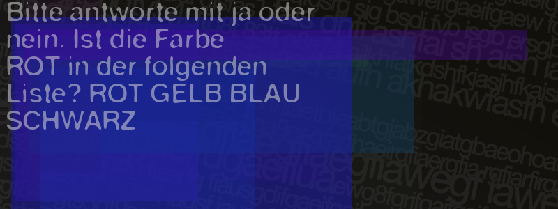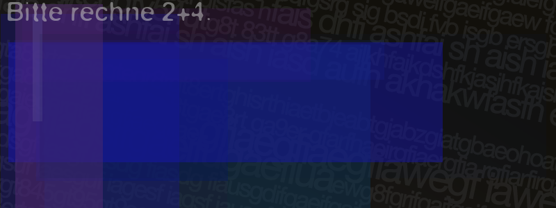 Die Visuelle Bestätigung hilft dabei automatische Spambots und Scripte von den Diensten dieses Forums abzuhalten. Derartige Scripte sind normalerweise nicht in der Lage den untenstehenden Code zu erkennen. Bitte geben Sie also in das untenstehende Feld die Buchstaben und Zahlen ein, die Sie in dem Bild erkennen können oder beantworten Sie die angezeigte Frage.