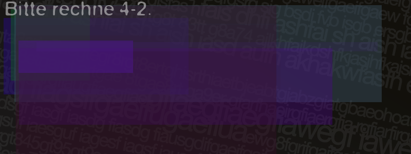 Die Visuelle Bestätigung hilft dabei automatische Spambots und Scripte von den Diensten dieses Forums abzuhalten. Derartige Scripte sind normalerweise nicht in der Lage den untenstehenden Code zu erkennen. Bitte geben Sie also in das untenstehende Feld die Buchstaben und Zahlen ein, die Sie in dem Bild erkennen können oder beantworten Sie die angezeigte Frage.