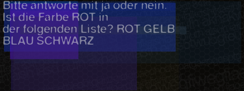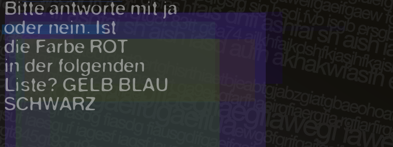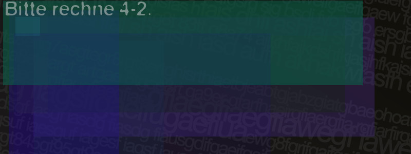 Die Visuelle Bestätigung hilft dabei automatische Spambots und Scripte von den Diensten dieses Forums abzuhalten. Derartige Scripte sind normalerweise nicht in der Lage den untenstehenden Code zu erkennen. Bitte geben Sie also in das untenstehende Feld die Buchstaben und Zahlen ein, die Sie in dem Bild erkennen können oder beantworten Sie die angezeigte Frage.