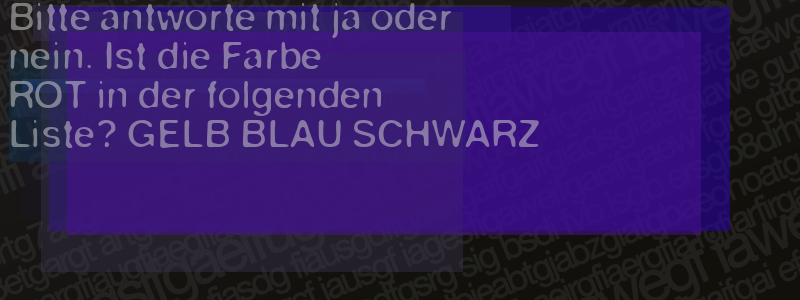Die Visuelle Bestätigung hilft dabei automatische Spambots und Scripte von den Diensten dieses Forums abzuhalten. Derartige Scripte sind normalerweise nicht in der Lage den untenstehenden Code zu erkennen. Bitte geben Sie also in das untenstehende Feld die Buchstaben und Zahlen ein, die Sie in dem Bild erkennen können oder beantworten Sie die angezeigte Frage.