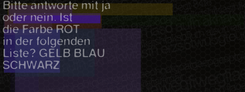 Die Visuelle Bestätigung hilft dabei automatische Spambots und Scripte von den Diensten dieses Forums abzuhalten. Derartige Scripte sind normalerweise nicht in der Lage den untenstehenden Code zu erkennen. Bitte geben Sie also in das untenstehende Feld die Buchstaben und Zahlen ein, die Sie in dem Bild erkennen können oder beantworten Sie die angezeigte Frage.