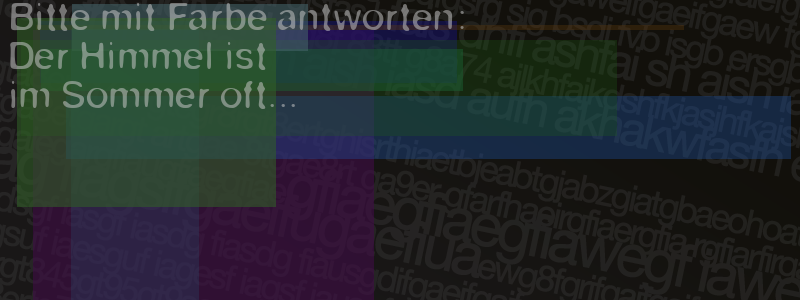 Die Visuelle Bestätigung hilft dabei automatische Spambots und Scripte von den Diensten dieses Forums abzuhalten. Derartige Scripte sind normalerweise nicht in der Lage den untenstehenden Code zu erkennen. Bitte geben Sie also in das untenstehende Feld die Buchstaben und Zahlen ein, die Sie in dem Bild erkennen können oder beantworten Sie die angezeigte Frage.