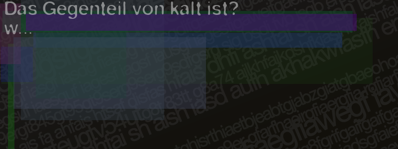 Die Visuelle Bestätigung hilft dabei automatische Spambots und Scripte von den Diensten dieses Forums abzuhalten. Derartige Scripte sind normalerweise nicht in der Lage den untenstehenden Code zu erkennen. Bitte geben Sie also in das untenstehende Feld die Buchstaben und Zahlen ein, die Sie in dem Bild erkennen können oder beantworten Sie die angezeigte Frage.
