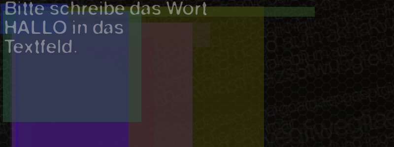 Die Visuelle Bestätigung hilft dabei automatische Spambots und Scripte von den Diensten dieses Forums abzuhalten. Derartige Scripte sind normalerweise nicht in der Lage den untenstehenden Code zu erkennen. Bitte geben Sie also in das untenstehende Feld die Buchstaben und Zahlen ein, die Sie in dem Bild erkennen können oder beantworten Sie die angezeigte Frage.
