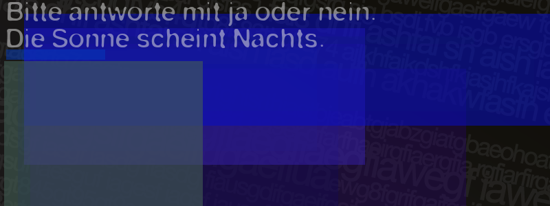 Die Visuelle Bestätigung hilft dabei automatische Spambots und Scripte von den Diensten dieses Forums abzuhalten. Derartige Scripte sind normalerweise nicht in der Lage den untenstehenden Code zu erkennen. Bitte geben Sie also in das untenstehende Feld die Buchstaben und Zahlen ein, die Sie in dem Bild erkennen können oder beantworten Sie die angezeigte Frage.