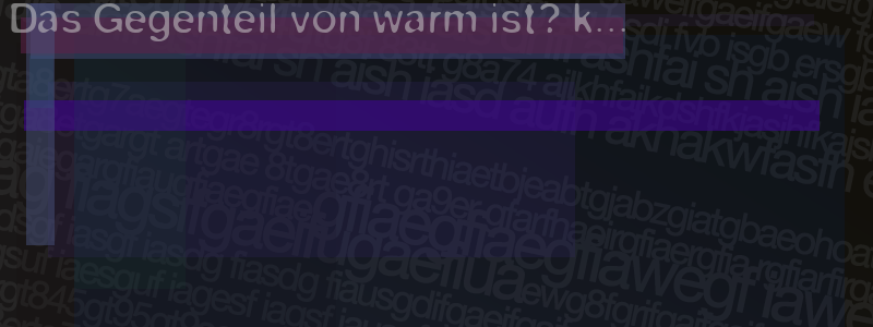 Die Visuelle Bestätigung hilft dabei automatische Spambots und Scripte von den Diensten dieses Forums abzuhalten. Derartige Scripte sind normalerweise nicht in der Lage den untenstehenden Code zu erkennen. Bitte geben Sie also in das untenstehende Feld die Buchstaben und Zahlen ein, die Sie in dem Bild erkennen können oder beantworten Sie die angezeigte Frage.