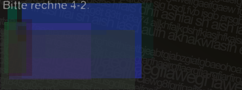 Die Visuelle Bestätigung hilft dabei automatische Spambots und Scripte von den Diensten dieses Forums abzuhalten. Derartige Scripte sind normalerweise nicht in der Lage den untenstehenden Code zu erkennen. Bitte geben Sie also in das untenstehende Feld die Buchstaben und Zahlen ein, die Sie in dem Bild erkennen können oder beantworten Sie die angezeigte Frage.