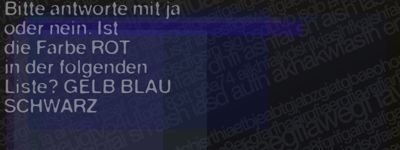 Die Visuelle Bestätigung hilft dabei automatische Spambots und Scripte von den Diensten dieses Forums abzuhalten. Derartige Scripte sind normalerweise nicht in der Lage den untenstehenden Code zu erkennen. Bitte geben Sie also in das untenstehende Feld die Buchstaben und Zahlen ein, die Sie in dem Bild erkennen können oder beantworten Sie die angezeigte Frage.