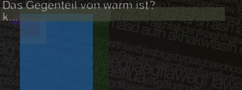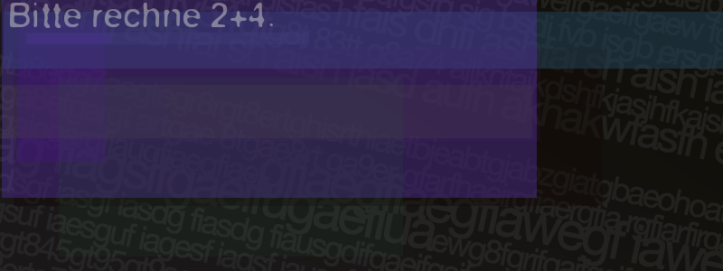 Die Visuelle Bestätigung hilft dabei automatische Spambots und Scripte von den Diensten dieses Forums abzuhalten. Derartige Scripte sind normalerweise nicht in der Lage den untenstehenden Code zu erkennen. Bitte geben Sie also in das untenstehende Feld die Buchstaben und Zahlen ein, die Sie in dem Bild erkennen können oder beantworten Sie die angezeigte Frage.