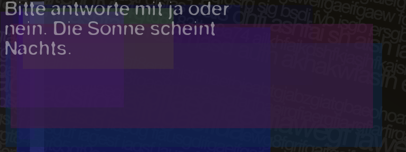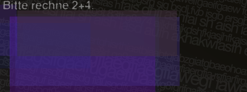 Die Visuelle Bestätigung hilft dabei automatische Spambots und Scripte von den Diensten dieses Forums abzuhalten. Derartige Scripte sind normalerweise nicht in der Lage den untenstehenden Code zu erkennen. Bitte geben Sie also in das untenstehende Feld die Buchstaben und Zahlen ein, die Sie in dem Bild erkennen können oder beantworten Sie die angezeigte Frage.