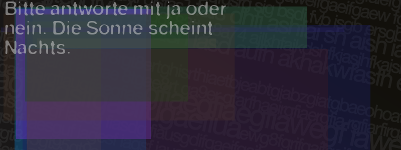 Die Visuelle Bestätigung hilft dabei automatische Spambots und Scripte von den Diensten dieses Forums abzuhalten. Derartige Scripte sind normalerweise nicht in der Lage den untenstehenden Code zu erkennen. Bitte geben Sie also in das untenstehende Feld die Buchstaben und Zahlen ein, die Sie in dem Bild erkennen können oder beantworten Sie die angezeigte Frage.