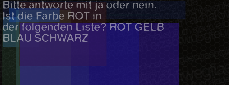 Die Visuelle Bestätigung hilft dabei automatische Spambots und Scripte von den Diensten dieses Forums abzuhalten. Derartige Scripte sind normalerweise nicht in der Lage den untenstehenden Code zu erkennen. Bitte geben Sie also in das untenstehende Feld die Buchstaben und Zahlen ein, die Sie in dem Bild erkennen können oder beantworten Sie die angezeigte Frage.