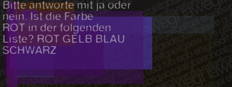 Die Visuelle Bestätigung hilft dabei automatische Spambots und Scripte von den Diensten dieses Forums abzuhalten. Derartige Scripte sind normalerweise nicht in der Lage den untenstehenden Code zu erkennen. Bitte geben Sie also in das untenstehende Feld die Buchstaben und Zahlen ein, die Sie in dem Bild erkennen können oder beantworten Sie die angezeigte Frage.
