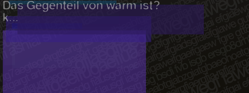 Die Visuelle Bestätigung hilft dabei automatische Spambots und Scripte von den Diensten dieses Forums abzuhalten. Derartige Scripte sind normalerweise nicht in der Lage den untenstehenden Code zu erkennen. Bitte geben Sie also in das untenstehende Feld die Buchstaben und Zahlen ein, die Sie in dem Bild erkennen können oder beantworten Sie die angezeigte Frage.