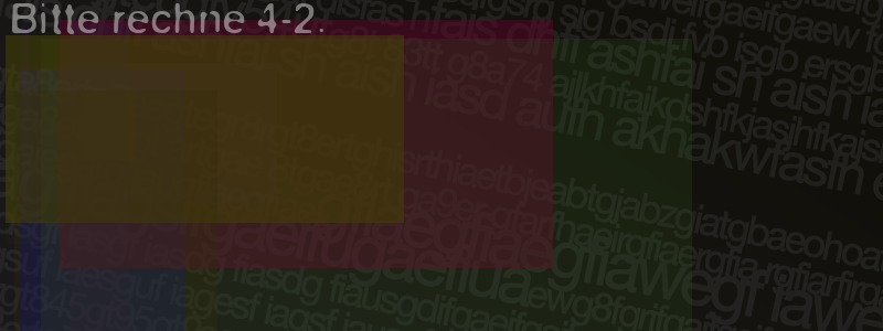 Die Visuelle Bestätigung hilft dabei automatische Spambots und Scripte von den Diensten dieses Forums abzuhalten. Derartige Scripte sind normalerweise nicht in der Lage den untenstehenden Code zu erkennen. Bitte geben Sie also in das untenstehende Feld die Buchstaben und Zahlen ein, die Sie in dem Bild erkennen können oder beantworten Sie die angezeigte Frage.