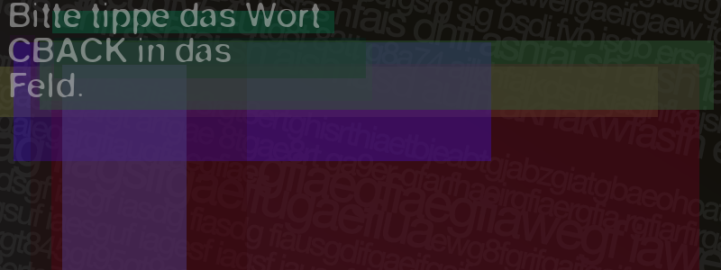 Die Visuelle Bestätigung hilft dabei automatische Spambots und Scripte von den Diensten dieses Forums abzuhalten. Derartige Scripte sind normalerweise nicht in der Lage den untenstehenden Code zu erkennen. Bitte geben Sie also in das untenstehende Feld die Buchstaben und Zahlen ein, die Sie in dem Bild erkennen können oder beantworten Sie die angezeigte Frage.