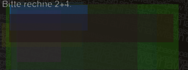 Die Visuelle Bestätigung hilft dabei automatische Spambots und Scripte von den Diensten dieses Forums abzuhalten. Derartige Scripte sind normalerweise nicht in der Lage den untenstehenden Code zu erkennen. Bitte geben Sie also in das untenstehende Feld die Buchstaben und Zahlen ein, die Sie in dem Bild erkennen können oder beantworten Sie die angezeigte Frage.