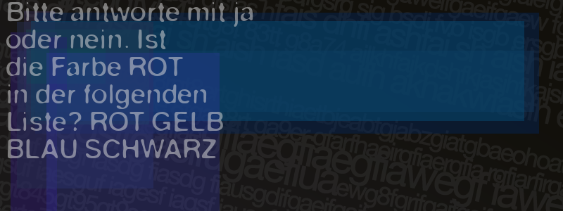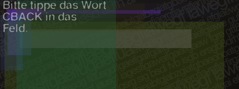 Die Visuelle Bestätigung hilft dabei automatische Spambots und Scripte von den Diensten dieses Forums abzuhalten. Derartige Scripte sind normalerweise nicht in der Lage den untenstehenden Code zu erkennen. Bitte geben Sie also in das untenstehende Feld die Buchstaben und Zahlen ein, die Sie in dem Bild erkennen können oder beantworten Sie die angezeigte Frage.