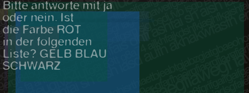 Die Visuelle Bestätigung hilft dabei automatische Spambots und Scripte von den Diensten dieses Forums abzuhalten. Derartige Scripte sind normalerweise nicht in der Lage den untenstehenden Code zu erkennen. Bitte geben Sie also in das untenstehende Feld die Buchstaben und Zahlen ein, die Sie in dem Bild erkennen können oder beantworten Sie die angezeigte Frage.
