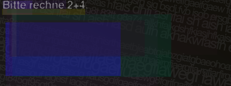 Die Visuelle Bestätigung hilft dabei automatische Spambots und Scripte von den Diensten dieses Forums abzuhalten. Derartige Scripte sind normalerweise nicht in der Lage den untenstehenden Code zu erkennen. Bitte geben Sie also in das untenstehende Feld die Buchstaben und Zahlen ein, die Sie in dem Bild erkennen können oder beantworten Sie die angezeigte Frage.
