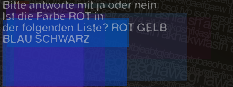 Die Visuelle Bestätigung hilft dabei automatische Spambots und Scripte von den Diensten dieses Forums abzuhalten. Derartige Scripte sind normalerweise nicht in der Lage den untenstehenden Code zu erkennen. Bitte geben Sie also in das untenstehende Feld die Buchstaben und Zahlen ein, die Sie in dem Bild erkennen können oder beantworten Sie die angezeigte Frage.