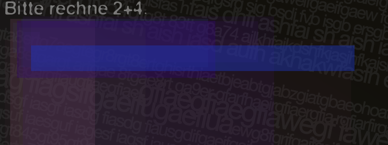 Die Visuelle Bestätigung hilft dabei automatische Spambots und Scripte von den Diensten dieses Forums abzuhalten. Derartige Scripte sind normalerweise nicht in der Lage den untenstehenden Code zu erkennen. Bitte geben Sie also in das untenstehende Feld die Buchstaben und Zahlen ein, die Sie in dem Bild erkennen können oder beantworten Sie die angezeigte Frage.