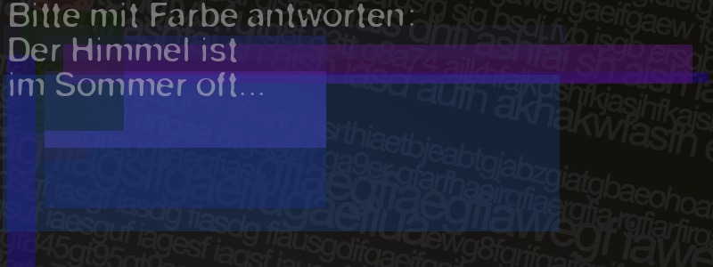 Die Visuelle Bestätigung hilft dabei automatische Spambots und Scripte von den Diensten dieses Forums abzuhalten. Derartige Scripte sind normalerweise nicht in der Lage den untenstehenden Code zu erkennen. Bitte geben Sie also in das untenstehende Feld die Buchstaben und Zahlen ein, die Sie in dem Bild erkennen können oder beantworten Sie die angezeigte Frage.