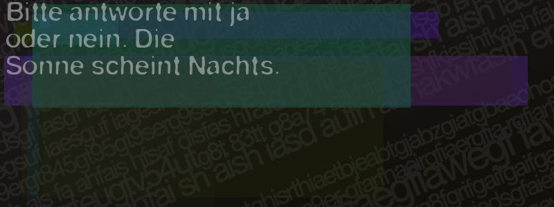 Die Visuelle Bestätigung hilft dabei automatische Spambots und Scripte von den Diensten dieses Forums abzuhalten. Derartige Scripte sind normalerweise nicht in der Lage den untenstehenden Code zu erkennen. Bitte geben Sie also in das untenstehende Feld die Buchstaben und Zahlen ein, die Sie in dem Bild erkennen können oder beantworten Sie die angezeigte Frage.