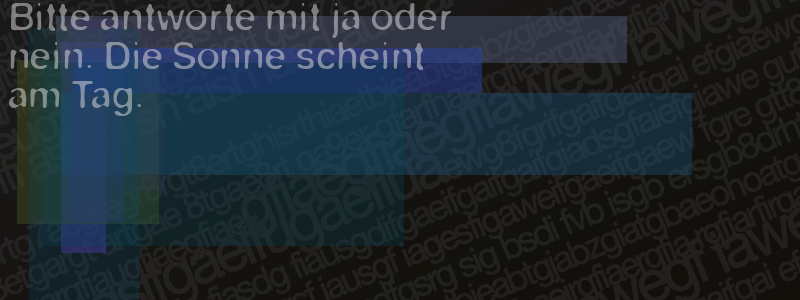 Die Visuelle Bestätigung hilft dabei automatische Spambots und Scripte von den Diensten dieses Forums abzuhalten. Derartige Scripte sind normalerweise nicht in der Lage den untenstehenden Code zu erkennen. Bitte geben Sie also in das untenstehende Feld die Buchstaben und Zahlen ein, die Sie in dem Bild erkennen können oder beantworten Sie die angezeigte Frage.