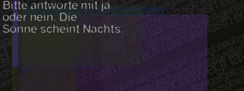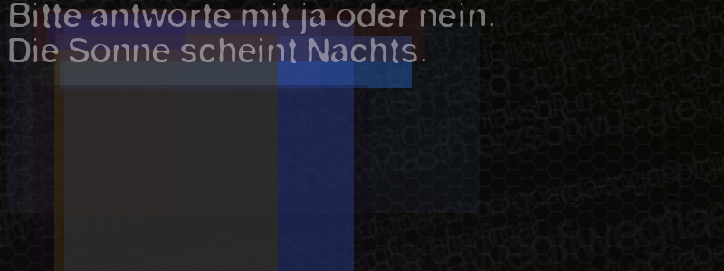 Die Visuelle Bestätigung hilft dabei automatische Spambots und Scripte von den Diensten dieses Forums abzuhalten. Derartige Scripte sind normalerweise nicht in der Lage den untenstehenden Code zu erkennen. Bitte geben Sie also in das untenstehende Feld die Buchstaben und Zahlen ein, die Sie in dem Bild erkennen können oder beantworten Sie die angezeigte Frage.