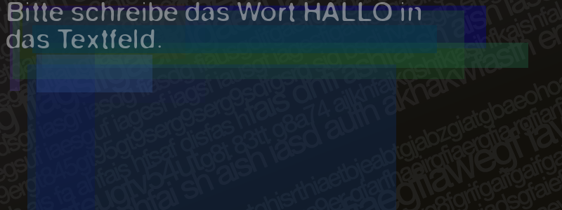 Die Visuelle Bestätigung hilft dabei automatische Spambots und Scripte von den Diensten dieses Forums abzuhalten. Derartige Scripte sind normalerweise nicht in der Lage den untenstehenden Code zu erkennen. Bitte geben Sie also in das untenstehende Feld die Buchstaben und Zahlen ein, die Sie in dem Bild erkennen können oder beantworten Sie die angezeigte Frage.