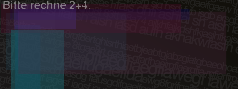 Die Visuelle Bestätigung hilft dabei automatische Spambots und Scripte von den Diensten dieses Forums abzuhalten. Derartige Scripte sind normalerweise nicht in der Lage den untenstehenden Code zu erkennen. Bitte geben Sie also in das untenstehende Feld die Buchstaben und Zahlen ein, die Sie in dem Bild erkennen können oder beantworten Sie die angezeigte Frage.