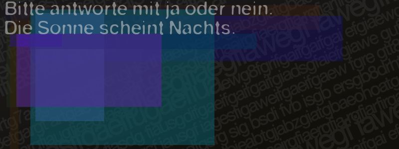 Die Visuelle Bestätigung hilft dabei automatische Spambots und Scripte von den Diensten dieses Forums abzuhalten. Derartige Scripte sind normalerweise nicht in der Lage den untenstehenden Code zu erkennen. Bitte geben Sie also in das untenstehende Feld die Buchstaben und Zahlen ein, die Sie in dem Bild erkennen können oder beantworten Sie die angezeigte Frage.