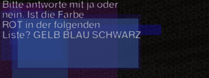Die Visuelle Bestätigung hilft dabei automatische Spambots und Scripte von den Diensten dieses Forums abzuhalten. Derartige Scripte sind normalerweise nicht in der Lage den untenstehenden Code zu erkennen. Bitte geben Sie also in das untenstehende Feld die Buchstaben und Zahlen ein, die Sie in dem Bild erkennen können oder beantworten Sie die angezeigte Frage.