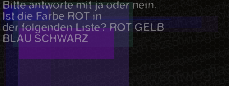 Die Visuelle Bestätigung hilft dabei automatische Spambots und Scripte von den Diensten dieses Forums abzuhalten. Derartige Scripte sind normalerweise nicht in der Lage den untenstehenden Code zu erkennen. Bitte geben Sie also in das untenstehende Feld die Buchstaben und Zahlen ein, die Sie in dem Bild erkennen können oder beantworten Sie die angezeigte Frage.