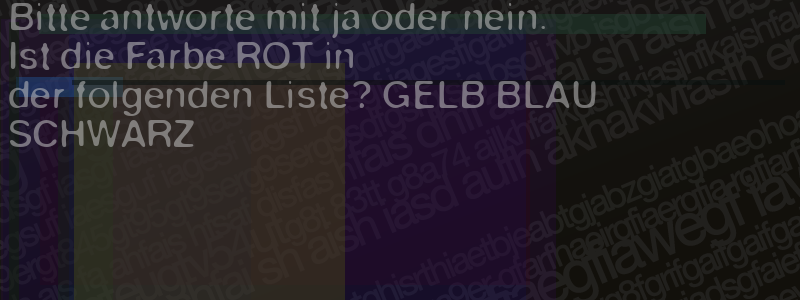 Die Visuelle Bestätigung hilft dabei automatische Spambots und Scripte von den Diensten dieses Forums abzuhalten. Derartige Scripte sind normalerweise nicht in der Lage den untenstehenden Code zu erkennen. Bitte geben Sie also in das untenstehende Feld die Buchstaben und Zahlen ein, die Sie in dem Bild erkennen können oder beantworten Sie die angezeigte Frage.