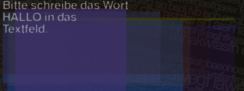 Die Visuelle Bestätigung hilft dabei automatische Spambots und Scripte von den Diensten dieses Forums abzuhalten. Derartige Scripte sind normalerweise nicht in der Lage den untenstehenden Code zu erkennen. Bitte geben Sie also in das untenstehende Feld die Buchstaben und Zahlen ein, die Sie in dem Bild erkennen können oder beantworten Sie die angezeigte Frage.