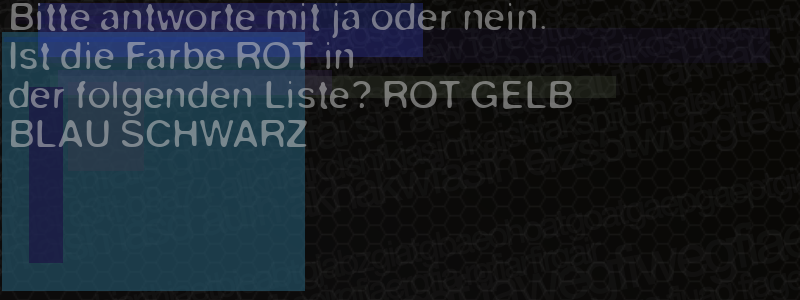 Die Visuelle Bestätigung hilft dabei automatische Spambots und Scripte von den Diensten dieses Forums abzuhalten. Derartige Scripte sind normalerweise nicht in der Lage den untenstehenden Code zu erkennen. Bitte geben Sie also in das untenstehende Feld die Buchstaben und Zahlen ein, die Sie in dem Bild erkennen können oder beantworten Sie die angezeigte Frage.
