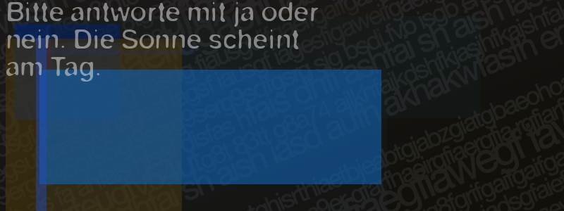 Die Visuelle Bestätigung hilft dabei automatische Spambots und Scripte von den Diensten dieses Forums abzuhalten. Derartige Scripte sind normalerweise nicht in der Lage den untenstehenden Code zu erkennen. Bitte geben Sie also in das untenstehende Feld die Buchstaben und Zahlen ein, die Sie in dem Bild erkennen können oder beantworten Sie die angezeigte Frage.