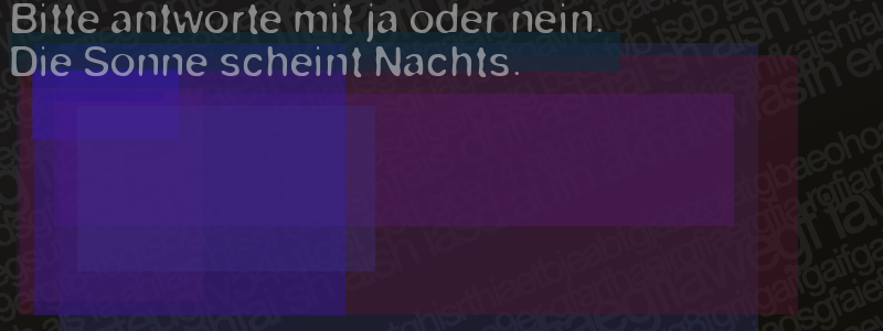 Die Visuelle Bestätigung hilft dabei automatische Spambots und Scripte von den Diensten dieses Forums abzuhalten. Derartige Scripte sind normalerweise nicht in der Lage den untenstehenden Code zu erkennen. Bitte geben Sie also in das untenstehende Feld die Buchstaben und Zahlen ein, die Sie in dem Bild erkennen können oder beantworten Sie die angezeigte Frage.