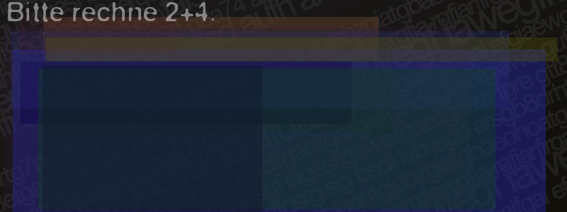 Die Visuelle Bestätigung hilft dabei automatische Spambots und Scripte von den Diensten dieses Forums abzuhalten. Derartige Scripte sind normalerweise nicht in der Lage den untenstehenden Code zu erkennen. Bitte geben Sie also in das untenstehende Feld die Buchstaben und Zahlen ein, die Sie in dem Bild erkennen können oder beantworten Sie die angezeigte Frage.