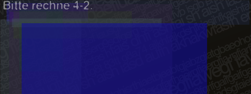 Die Visuelle Bestätigung hilft dabei automatische Spambots und Scripte von den Diensten dieses Forums abzuhalten. Derartige Scripte sind normalerweise nicht in der Lage den untenstehenden Code zu erkennen. Bitte geben Sie also in das untenstehende Feld die Buchstaben und Zahlen ein, die Sie in dem Bild erkennen können oder beantworten Sie die angezeigte Frage.