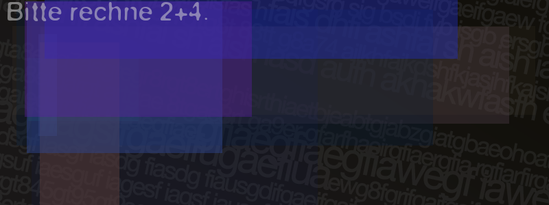 Die Visuelle Bestätigung hilft dabei automatische Spambots und Scripte von den Diensten dieses Forums abzuhalten. Derartige Scripte sind normalerweise nicht in der Lage den untenstehenden Code zu erkennen. Bitte geben Sie also in das untenstehende Feld die Buchstaben und Zahlen ein, die Sie in dem Bild erkennen können oder beantworten Sie die angezeigte Frage.