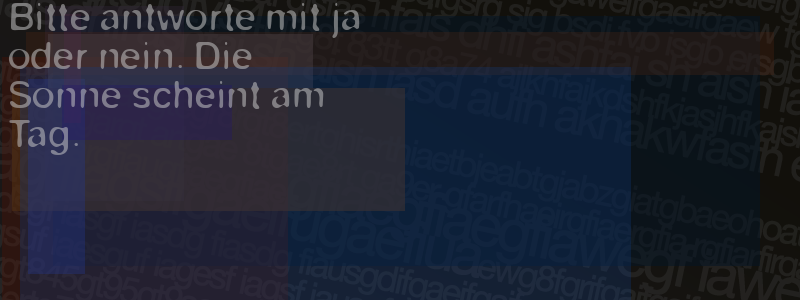 Die Visuelle Bestätigung hilft dabei automatische Spambots und Scripte von den Diensten dieses Forums abzuhalten. Derartige Scripte sind normalerweise nicht in der Lage den untenstehenden Code zu erkennen. Bitte geben Sie also in das untenstehende Feld die Buchstaben und Zahlen ein, die Sie in dem Bild erkennen können oder beantworten Sie die angezeigte Frage.