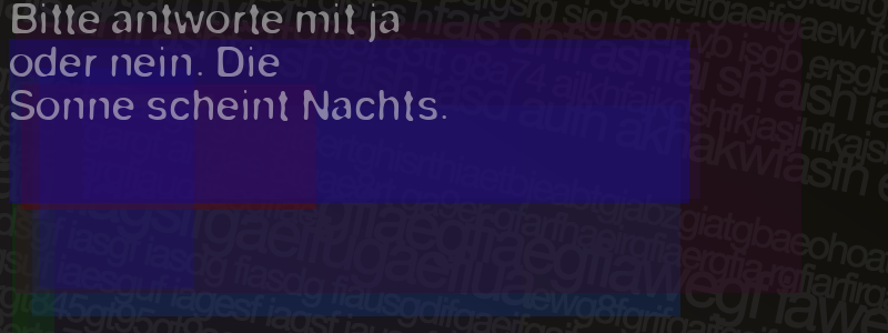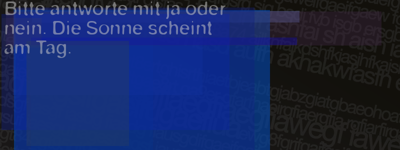 Die Visuelle Bestätigung hilft dabei automatische Spambots und Scripte von den Diensten dieses Forums abzuhalten. Derartige Scripte sind normalerweise nicht in der Lage den untenstehenden Code zu erkennen. Bitte geben Sie also in das untenstehende Feld die Buchstaben und Zahlen ein, die Sie in dem Bild erkennen können oder beantworten Sie die angezeigte Frage.