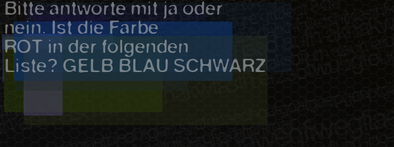 Die Visuelle Bestätigung hilft dabei automatische Spambots und Scripte von den Diensten dieses Forums abzuhalten. Derartige Scripte sind normalerweise nicht in der Lage den untenstehenden Code zu erkennen. Bitte geben Sie also in das untenstehende Feld die Buchstaben und Zahlen ein, die Sie in dem Bild erkennen können oder beantworten Sie die angezeigte Frage.