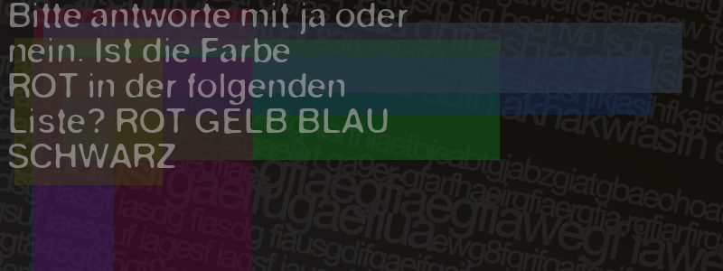 Die Visuelle Bestätigung hilft dabei automatische Spambots und Scripte von den Diensten dieses Forums abzuhalten. Derartige Scripte sind normalerweise nicht in der Lage den untenstehenden Code zu erkennen. Bitte geben Sie also in das untenstehende Feld die Buchstaben und Zahlen ein, die Sie in dem Bild erkennen können oder beantworten Sie die angezeigte Frage.