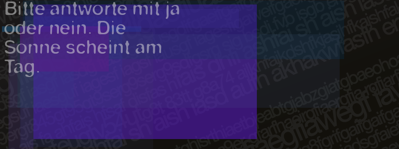 Die Visuelle Bestätigung hilft dabei automatische Spambots und Scripte von den Diensten dieses Forums abzuhalten. Derartige Scripte sind normalerweise nicht in der Lage den untenstehenden Code zu erkennen. Bitte geben Sie also in das untenstehende Feld die Buchstaben und Zahlen ein, die Sie in dem Bild erkennen können oder beantworten Sie die angezeigte Frage.